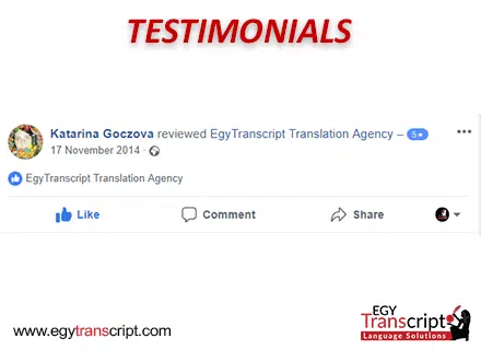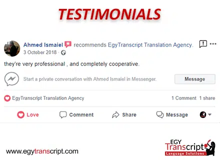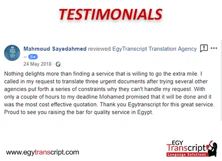 إذا كنت تحتاج ترجمة الشهادات مقبولة رسميًا، فنحن في ايجي ترانسكريبت نقدم لك خدمة ترجمة سريعة، دقيقة، معتمدة، وبأسعار مناسبة.