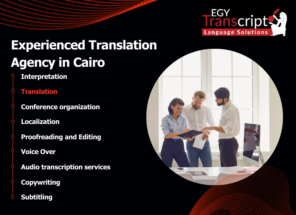 EgyTranscript is an experienced translation agency in Cairo whose main goal is to convey the most accurate meaning to the reader, audience, or listener. Whether it’s Arabic into English or English to Arabic translation, EgyTranscript always provides excellent translation work.